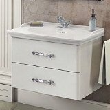 Тумбы комплектуются раковинами двух типов – выполненными из литого мрамора (искусственный камень) и санфаянсовыми (керамическими).
